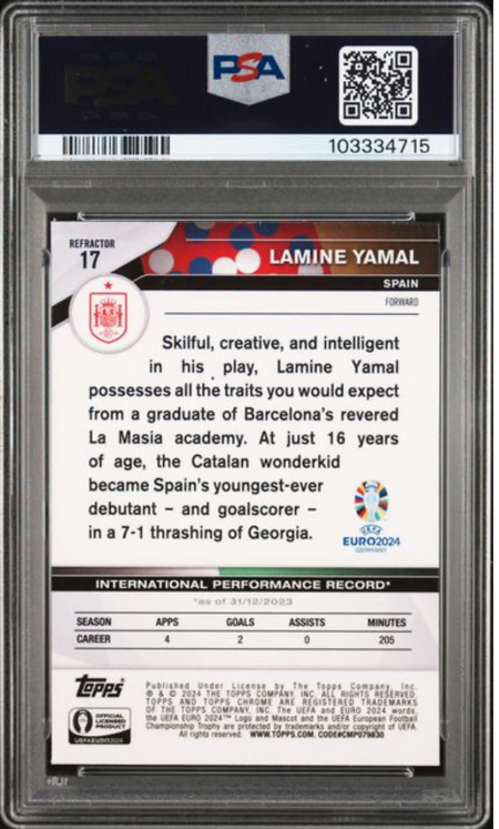 2024 TOPPS CHROME UEFA EURO #17 LAMINE YAMAL REFRACTOR PSA 10