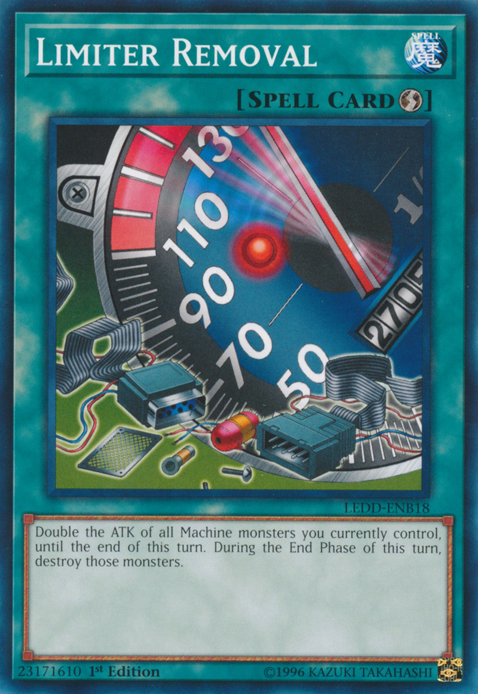 Double the ATK of all Machine monsters you currently control, until the end of this turn. During the End Phase of this turn, destroy those monsters.