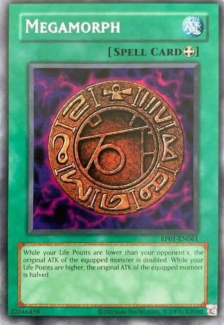 While your Life Points are lower than your opponent's, the original ATK of the equipped monster is doubled. While your Life Points are higher, the original ATK of the equipped monster is halved.