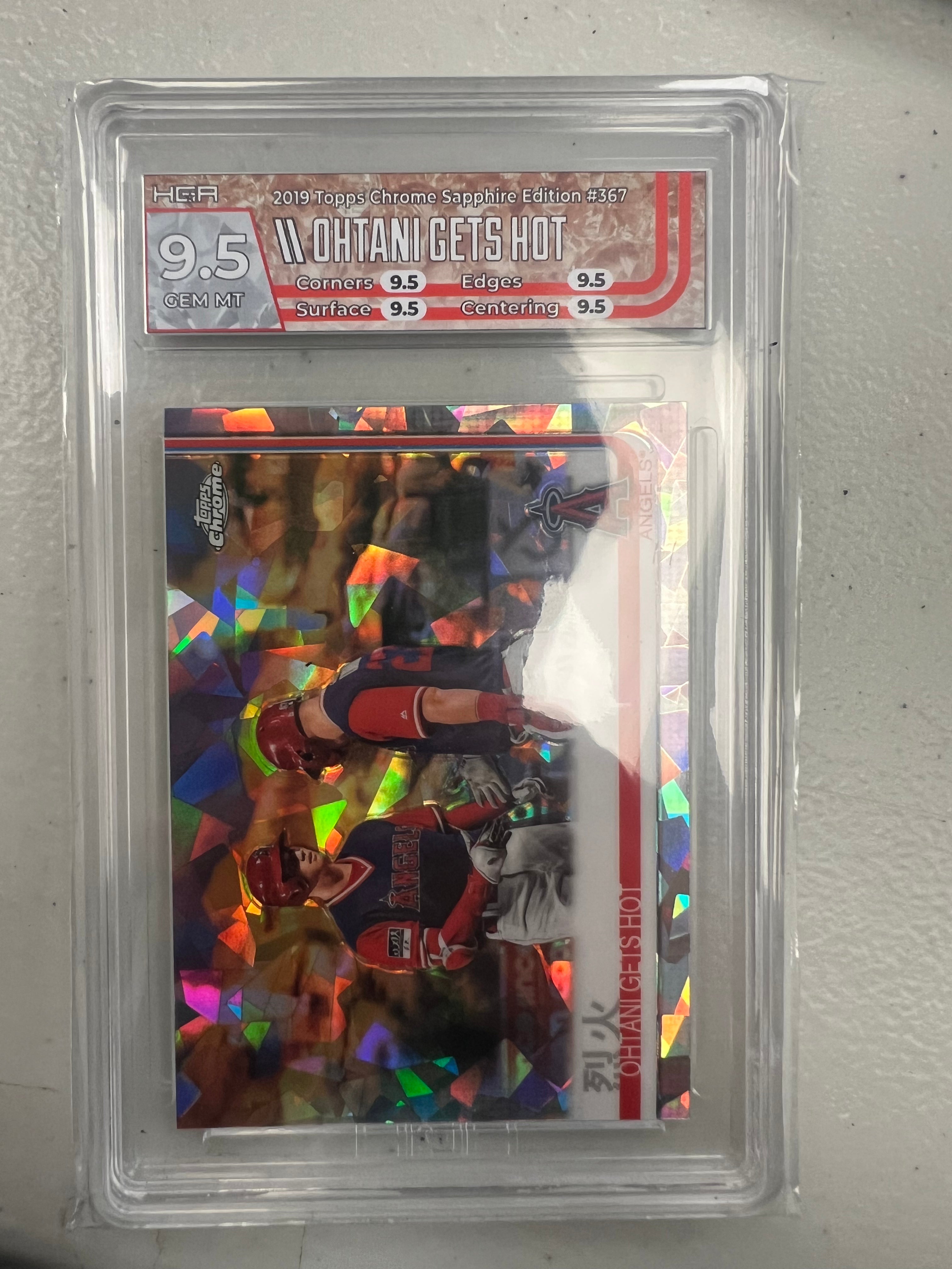 2019 TOPPS CHROME SAPPHIRE EDITION OHTANI GETS HOT #367 HGA 9.5