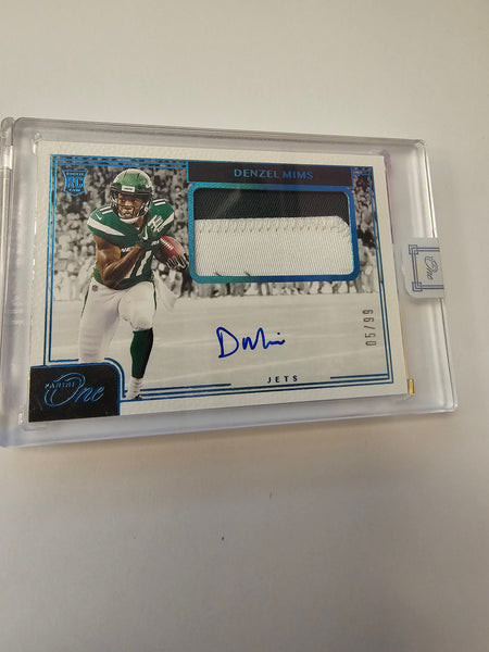 2020 Panini One Denzel Mims RPA Blue /99 Rookie Jersey Patch Auto #29