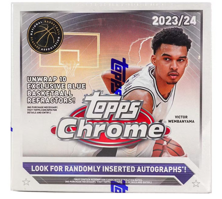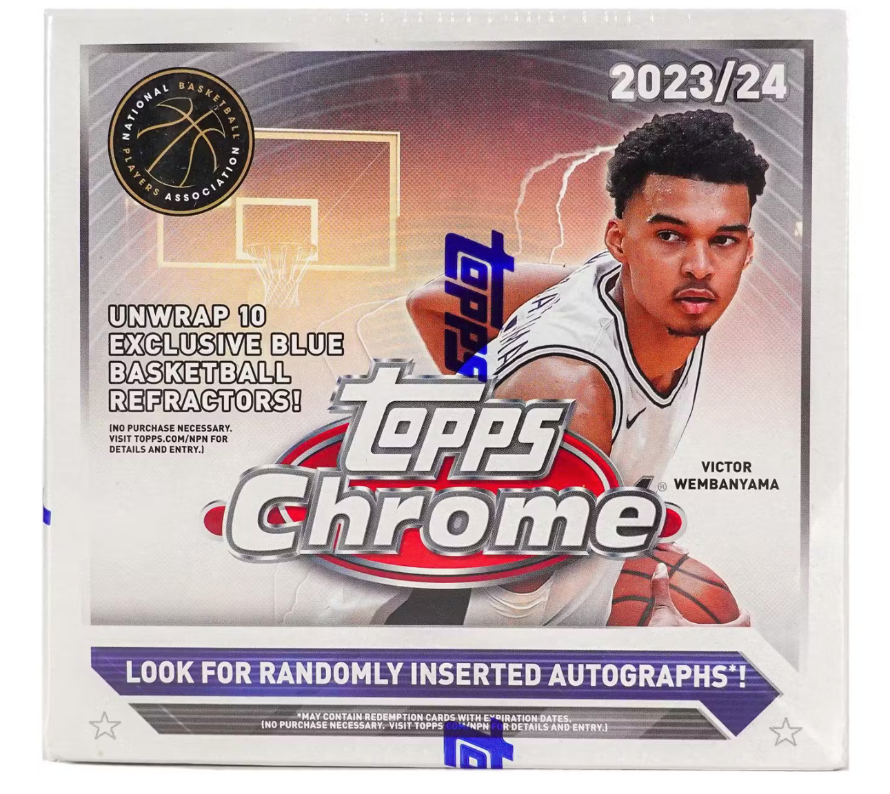 Returning to the Hobby in 2024, Topps Chrome Basketball is back! Find and collect the 200 card Base set featuring some of the top Rookies, Vets and Retired players in Basketball!