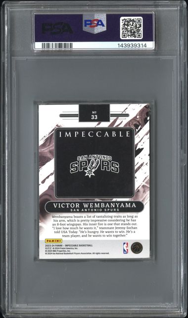 2023 Impeccable Victor Wembanyama Silver NBA Logo #33 Rookie *RARE* PSA NM7