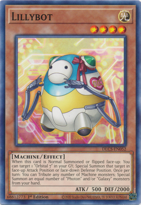 When this card is Normal Summoned or flipped face-up: You can target 1 "Orbital 7" in your GY; Special Summon that target in face-up Attack Position or face-down Defense Position. Once per turn: You can Tribute any number of Machine monsters; Special Summon an equal number of "Photon" and/or "Galaxy" monsters from your hand.