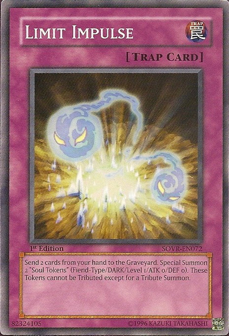 Send 2 cards from your hand to the Graveyard. Special Summon 2 Soul Tokens /Fiend-Type/DARK/Level 1/ATK 0/DEF 0). These tokens cannot be Tributed, except for a Tribute Summon.
