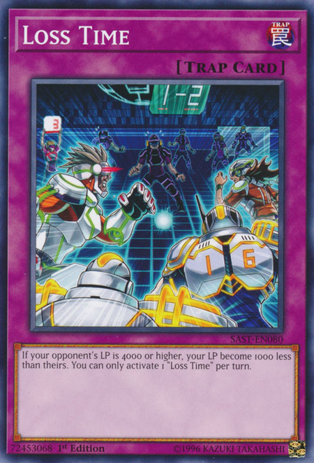 If your opponent's LP is 4000 or higher, your LP become 1000 less than theirs. You can only activate 1 "Loss Time" per turn.
