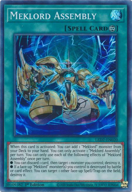 When this card is activated: You can add 1 "Meklord" monster from your Deck to your hand. You can only activate 1 "Meklord Assembly" per turn. You can only use each of the following effects of "Meklord Assembly" once per turn.