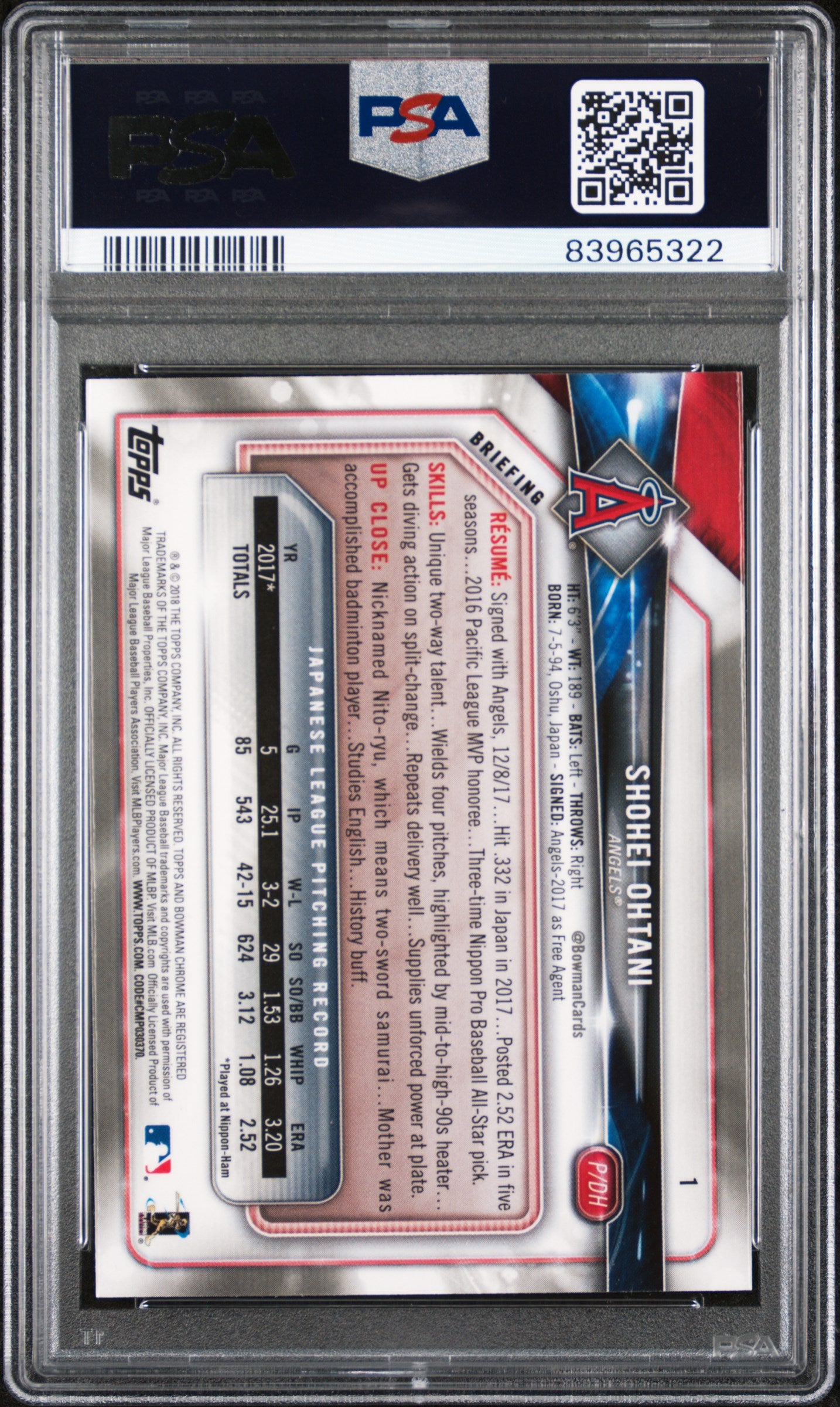 2018 BOWMAN CHROME #1 SHOHEI OHTANI PSA 10