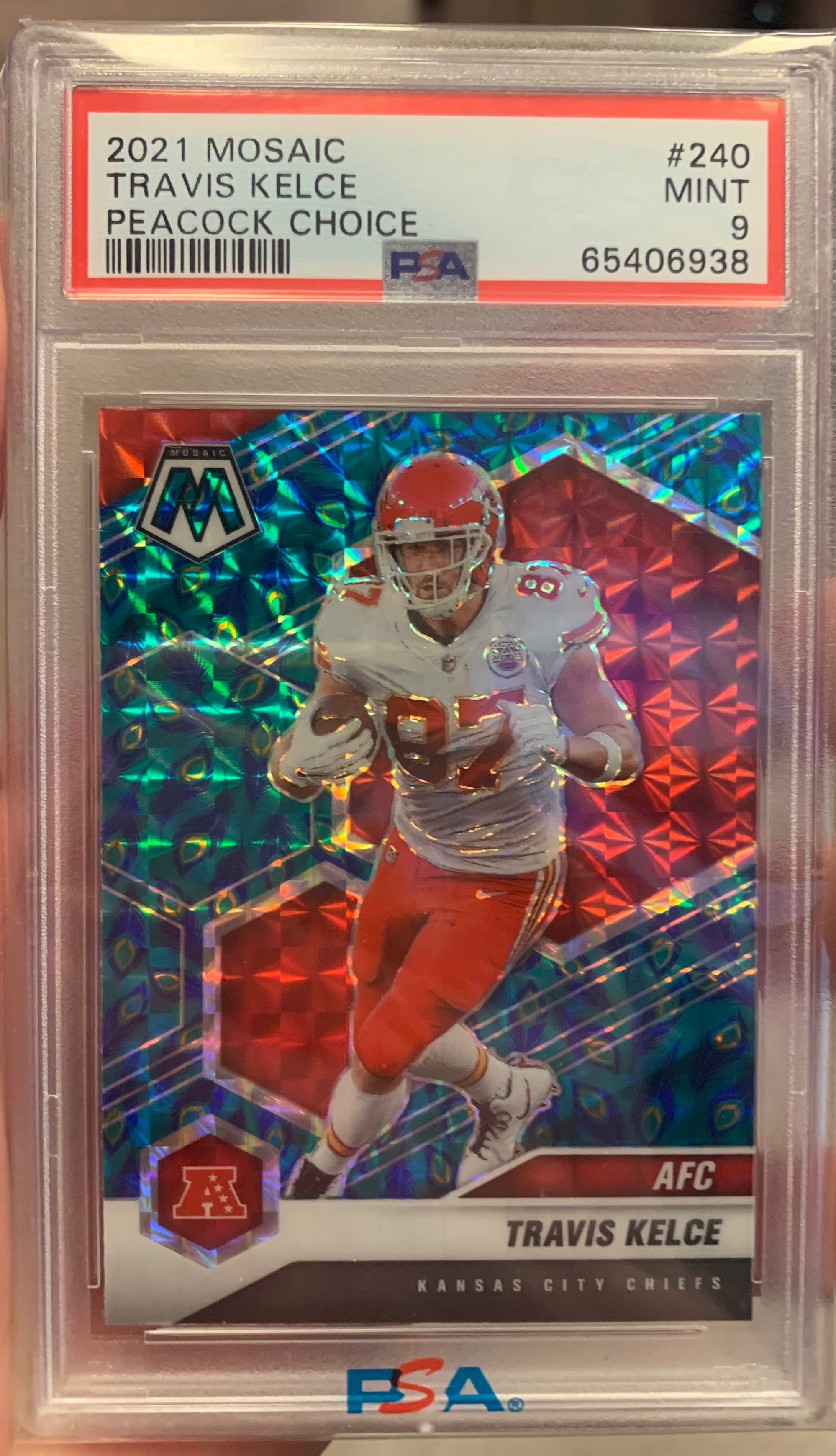2021 MOSAIC TRAVIS KELCE PEACOCK CHOICE PSA 9