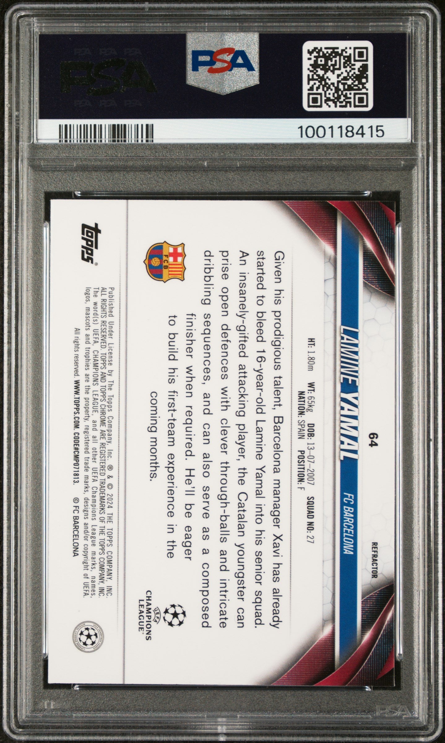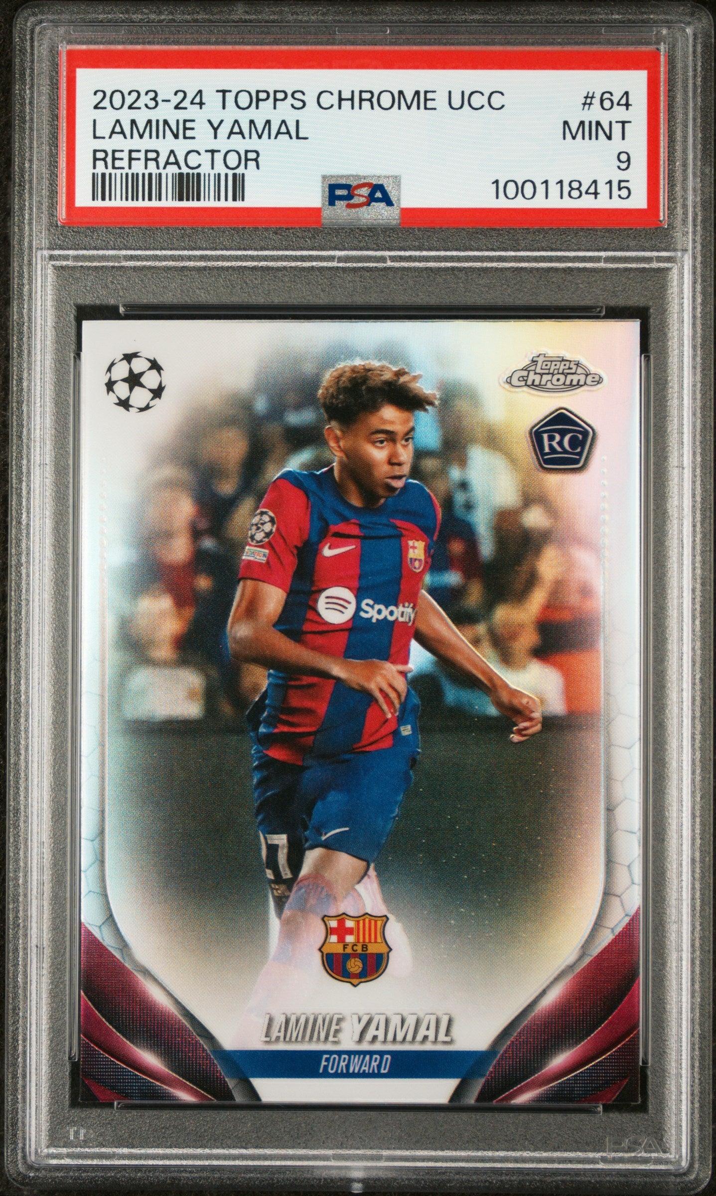 2023-24 TOPPS CHROME UEFA CLUB COMPETITIONS #64 LAMINE YAMAL REFRACTOR PSA 9