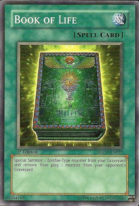 Special Summon 1 Zombie-Type monster from your Graveyard and remove from play 1 monster from your opponent's Graveyard.