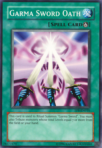 This card is used to Ritual Summon Garma Sword. You must also Tribute monsters whose total Levels equal 7 or more from the field or your hand.