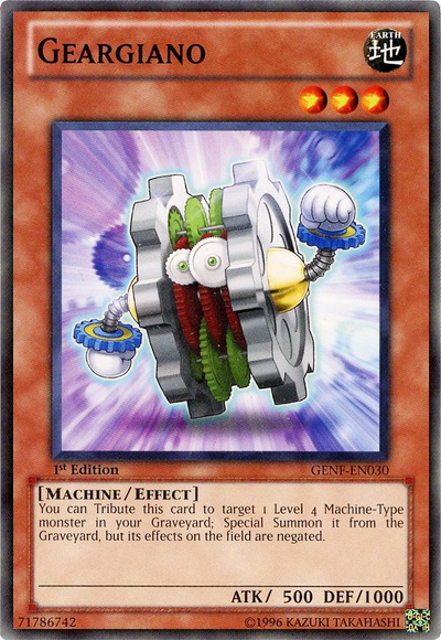 You can Tribute this card to target 1 Level 4 Machine-Type monster in your Graveyard, Special Summon it from the Graveyard, but its effects on the field are negated.