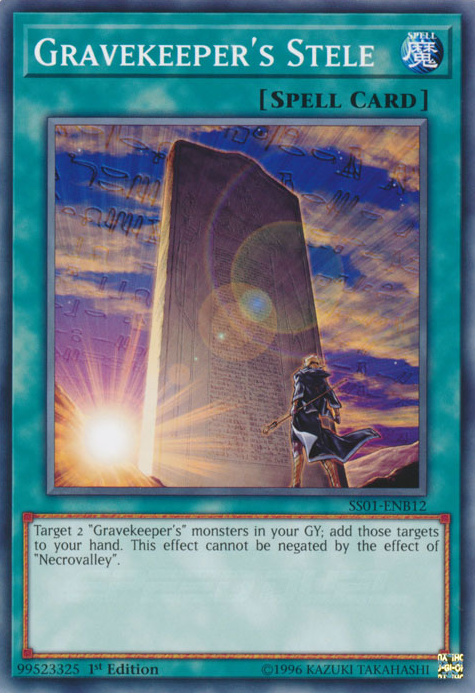 Target 2 "Gravekeeper's" monsters in your Graveyard; add those targets to your hand. This effect cannot be negated by the effect of "Necrovalley".