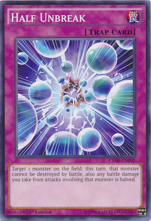 Target 1 monster on the field; this turn, that monster cannot be destroyed by battle, also any battle damage you take from battles involving that monster is halved.