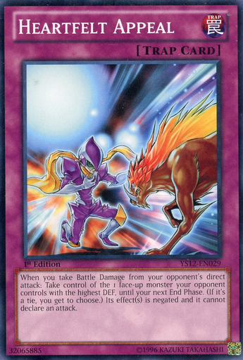 When you take Battle Damage from your opponent's direct attack: Take control of the 1 face-up monster your opponent controls with the highest DEF, until your next End Phase. (If it's a tie, you get to choose.) Its effect(s) is negated and it cannot declare an attack.