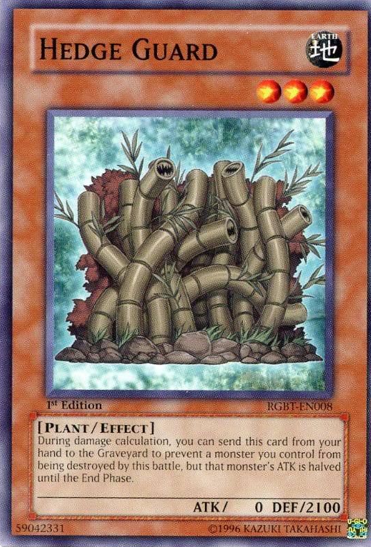 During damage calculation, you can send this card from your hand to the Graveyard to prevent a monster you control from being destroyed by this battle, but that monster's ATK is halved until the End Phase.