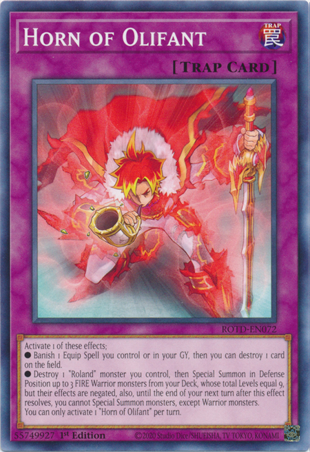 • Destroy 1 "Roland" monster you control, then Special Summon in Defense Position up to 3 FIRE Warrior monsters from your Deck, whose total Levels equal 9, but their effects are negated, also, until the end of your next turn after this effect resolves, you cannot Special Summon monsters, except Warrior monsters.