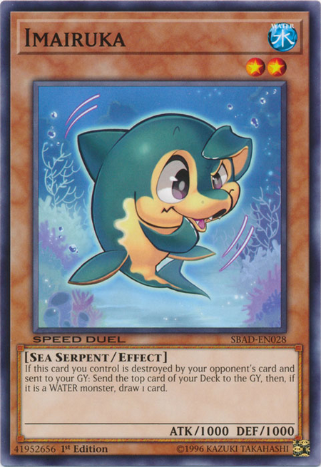 If this card you control is destroyed by your opponent's card and sent to your GY: Send the top card of your Deck to the GY, then, if it is a WATER monster, draw 1 card.